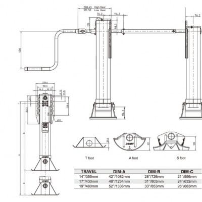 | Travel Options | 21" → 530 mm | 19" → 480 mm | 17" → 430 mm | 14" → 355 mm |